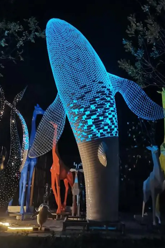 燈光雕塑小品作為藝術品,本身就具有審美價值,由于其造型、色彩、尺度再加上合理布局,本身就是城市公共空間、景區園林一景。運用雕塑小品的裝飾性能夠提高所在地點觀賞價值,滿足人們的審美要求,給人以藝術的享受和美感。